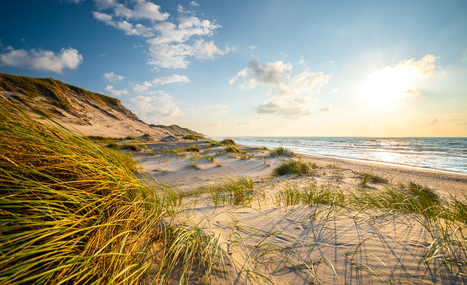 Weit läuft der Weststrand bei Skagen – zwischen mächtigen Dünen und der aufgewühlten Nordsee.